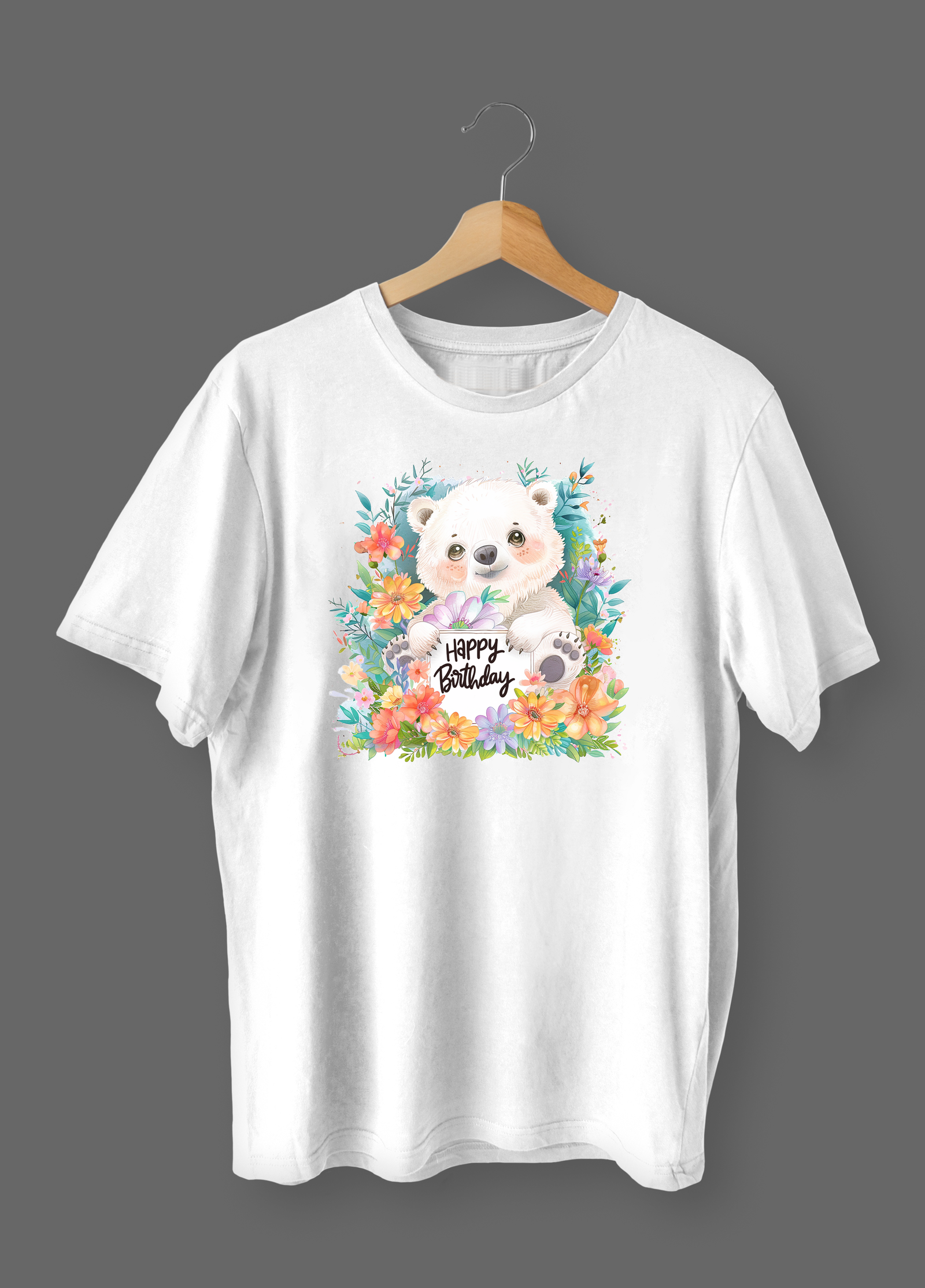 Make birthdays extra special with our adorable Bear Happy Birthday T-shirt! Crafted from soft, breathable fabric, this t-shirt features a charming bear graphic designed to bring smiles to all. Perfect for birthday parties, family gatherings, or casual outings, it combines fun and comfort in one delightful package. Available in various sizes, this shirt is a fantastic gift for kids and adults alike, making every birthday a whimsical occasion! Wear it with pride and let the celebrations begin!