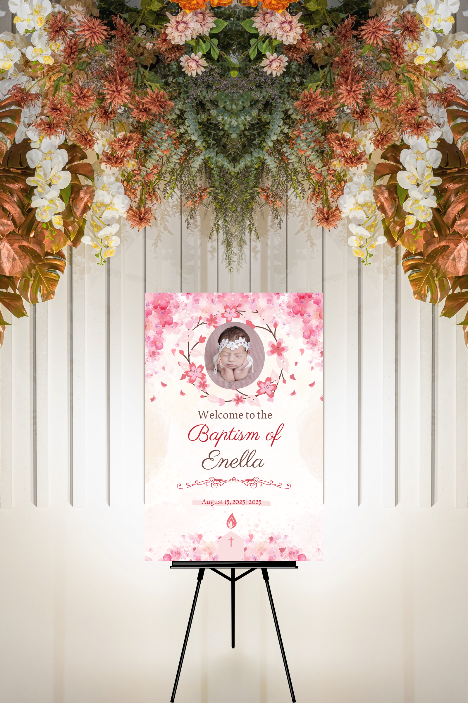 Make your event truly special with this Christening Baptism Welcome Sign Board. Perfectly crafted to add a touch of elegance, this sign board serves as the ideal way to welcome guests to your child’s baptism or christening ceremony. Its sophisticated design blends seamlessly with any event theme, offering a polished and timeless look. Whether used at the entrance or as part of the decorative setup, it helps set the tone for your celebration, making lasting impressions for both you and your attendees.